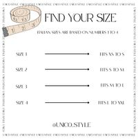 Discover your perfect fit with our Italian size guide. Each piece is designed with love and precision, based on Italian sizes 1 to 4 — because style should always feel as good as it looks.